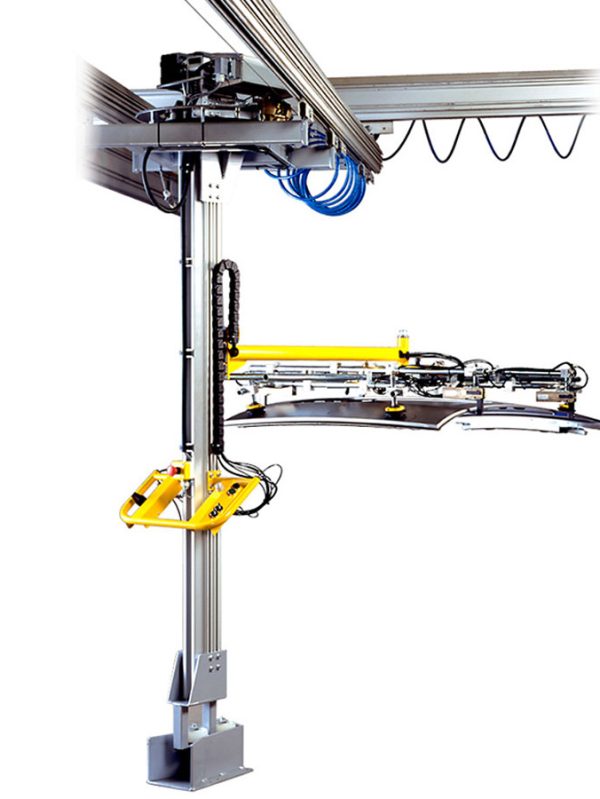 Easycrane ist ein intuitives und einfach zu bedienendes Hebegerät für schnelles und einfaches Heben. Easycrane besteht aus einem flexiblen Gelenkschwenkkran mit einem im äußeren Auslegerarm integrierten Vakuumheber. Mit Hilfe verschiedener Saugfüße kann er Lasten unterschiedlicher Größe, Form und Gewicht heben.