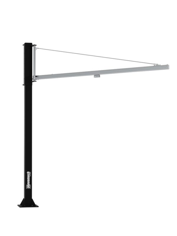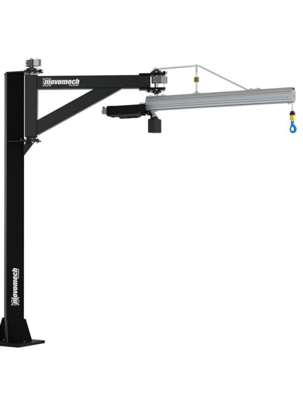 Leichtes und starkes AluminiumSäulenschwenkkran von Movomech besteht aus stabilen Säulen aus lackiertem Stahl und Schwenkarmen aus stabilen und leichten Aluminiumprofilen aus dem Mechrail Kransystemprogramm. Der Kranarm ist mit einem robusten und äußerst leicht laufenden Aluminium-Laufwagen mit hochwertigen Radlagern ausgestattet, an dem sich Ihr Hubgerät leicht montieren lässt.
